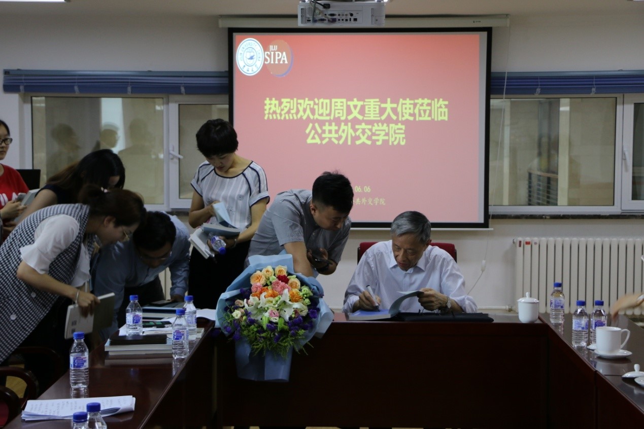 老院长刘德斌老师对周大使的发言进行了精彩的点评。学术座谈会结束后,周文重先生还将自己的两部著作赠予自拍偷拍