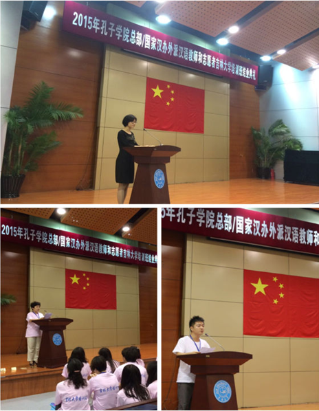 典礼在全体志愿者合唱歌曲“瀚宇之花盛开”中拉开序幕,大家皆被充满感情的歌声感染,再一次回味培训以来的点点滴滴。优秀外派教师培训学员大连外国语大学任晓丽老师和优秀汉语教师志愿者培训学员海南三亚琼州学院任德宇分别发言。他们代表全体学员对国家汉办、自拍偷拍