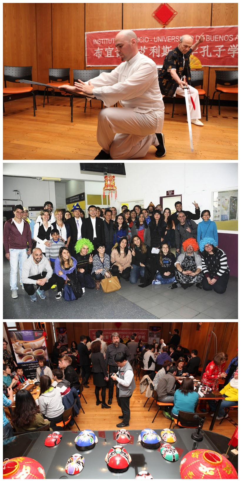 9 月25日,阿根廷布宜诺斯艾利斯大学孔子学院在布大礼堂举行中国文化“一站式体验”活动。中国驻阿根廷大使馆官员、孔子学院师生和阿根廷中国文化爱好者一百余人参加了此次活动。活动开始前,中国驻阿根廷大使馆韩孟堂文化参赞致辞,并敲响活动开始的锣声。活动中,布大孔子学院师生将茶艺、书法、剪纸、京剧、武术等中国文化精髓展示给阿根廷公众,并邀请他们体验。平日只能“水中望月”的阿根廷“中国迷”,此时可以拿起毛笔写书法,画上脸谱学京剧,端起茶杯品茗香,跟着大师学太极,亲身体验和面对面交流打破了“中国文化迷思”,参加者无不伸出大拇指点赞叫好。9月26日布大孔院在语言中心举行的“汉语交流小教室”活动,也吸引了众多布大孔院师生及阿根廷汉语爱好者参加。此次活动以汉语交际为主题,设置医院、饭店、旅行社、水果店多个实物模拟场景,让学生和汉语爱好者在实际运用中体验汉语交流的乐趣。在活动中表现优异的学员,还获得了各种各样的中国文化特色的奖品。