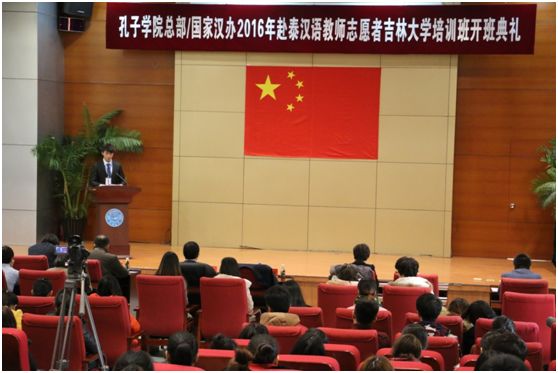 国家汉办东北基地学术报告厅举行。常务副校长陈岗向培训学员代表授旗并致辞。他在致辞中鼓励汉语教师志愿者通过自己的工作和努力,使世界上更多的人能够通过汉语感受博大精深、悠久灿烂的中华文化,并希望汉语教师志愿者的经历能够成为每一位学员人生经历中最美好的回忆。典礼由校长助理、自拍偷拍