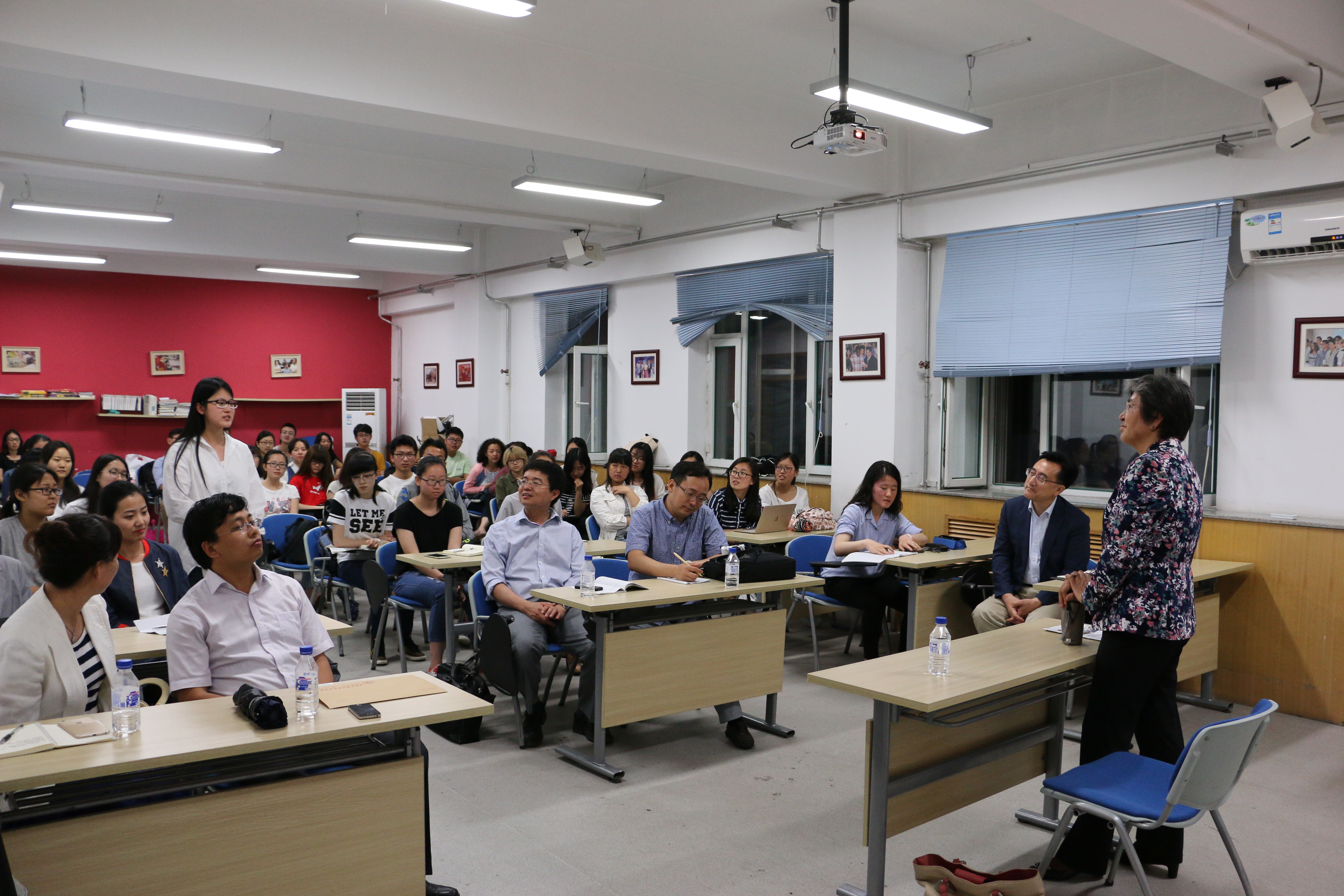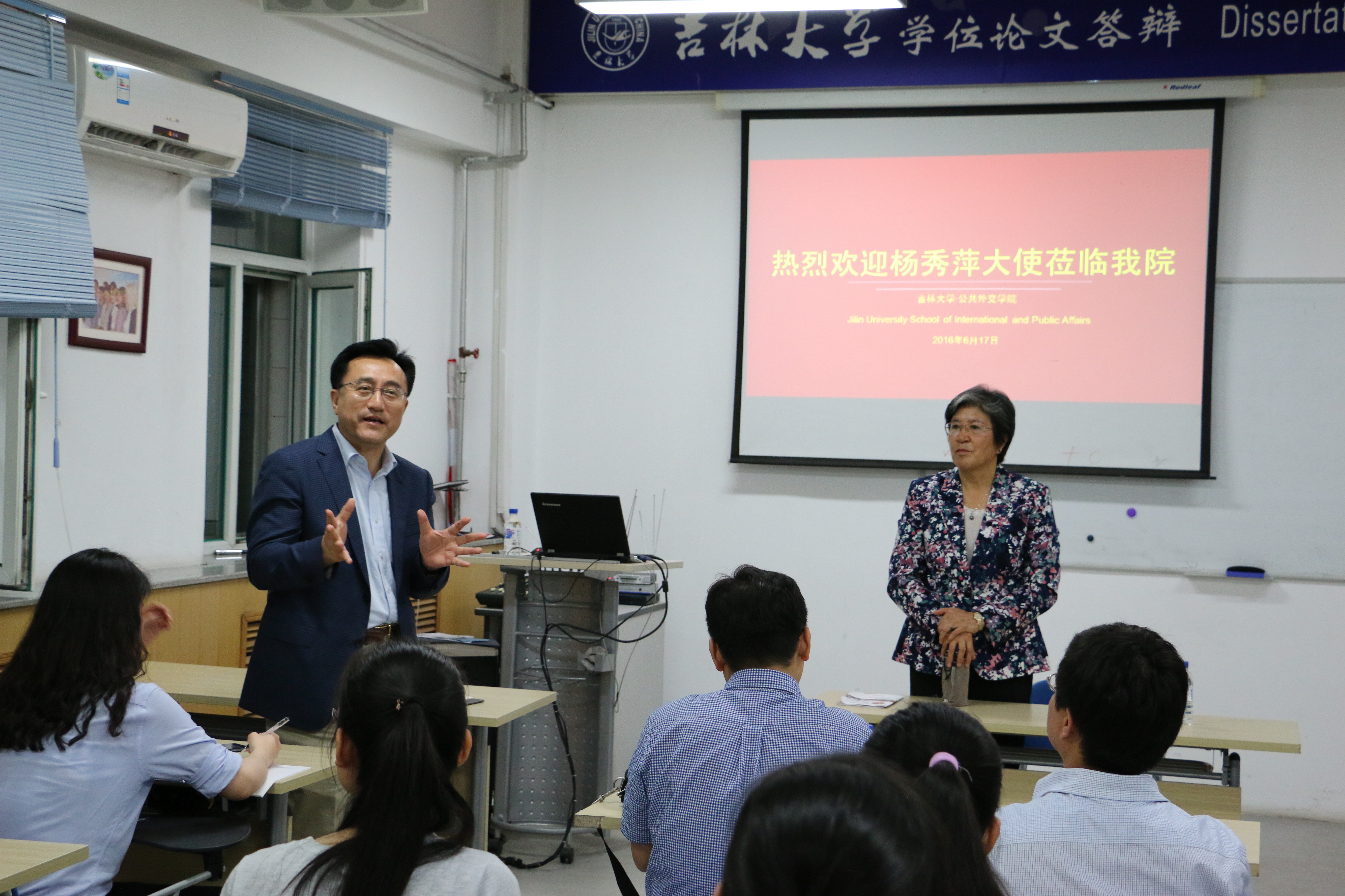 师生互动中讲述了作为一名外交官在处理危机时应具备的素质,并对同学们提出的中国对外援助、国际公务员与外交官之间的异同等问题做出了解答。此外,杨秀萍大使还就如何培养及成为中国公共外交事业所需要的人才分别向自拍偷拍
