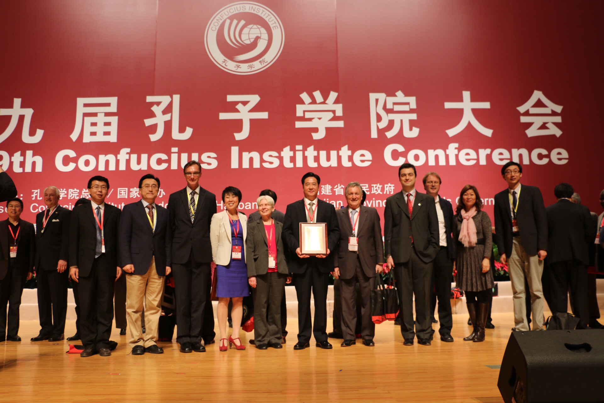 12月7日上午,第九届全球孔子学院大会开幕式在厦门市国际会议中心举行,我校获得“孔子学院先进中方合作院校”称号,在获奖的十所院校中排名第一。国务院副总理、孔子学院总部理事会主席刘延东向我校校长李元元颁发获奖证书,这是我校首次获此殊荣。