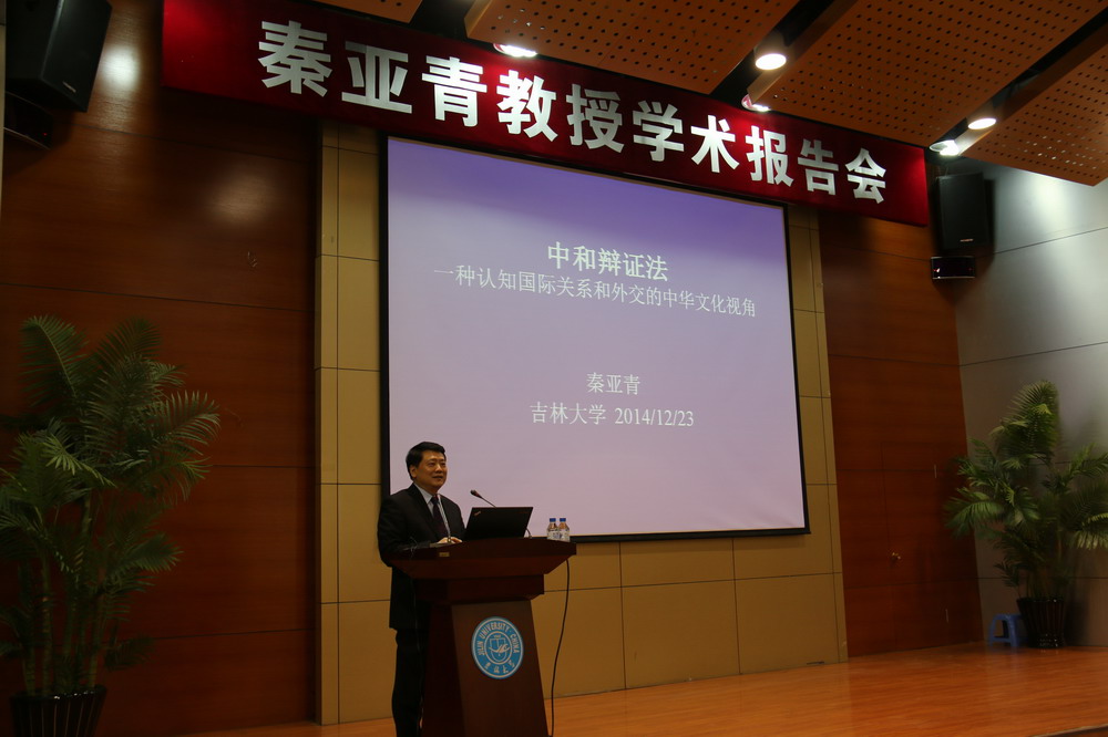 对秦亚青一行的来访讲学表示热烈的欢迎,对外交学院多年来在外交学、国际关系研究等领域对我校的支持表示高度的赞赏,双方就如何进一步加强在合作科研、学生互换等领域的交流与合作进行了深入细致的探讨。秦亚青教授在受聘和签字仪式结束后在中心校区国际学术大讲堂作了题为《中和辩证法:一种认知国际关系和外交的中华文化视角》的学术报告。