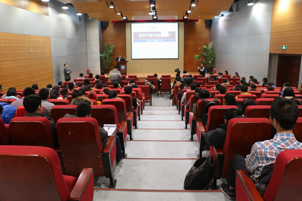 随后,胡锡进作了题为《复杂中国与激荡世界》的学术报告。胡锡进从新闻人的亲身经历出发,将中国变革与世界变革大时代下的主题化作精彩的故事娓娓道来。胡锡进阐述了中国作为超大型国家在现实世界中所面临的困难和机遇,指出中国人与外国人对于中国国际地位和中国与世界关系认识的巨大差异,强调作为一个超大规模的国家为何不能完全照搬国外经验与模式的原因所在。胡锡进论述结合,语言风趣幽默,不时引发了台下听众的笑声和掌声。报告后半段,胡总编与吉大学子就国内国际热点问题进行了问答,现场气氛十分热烈。