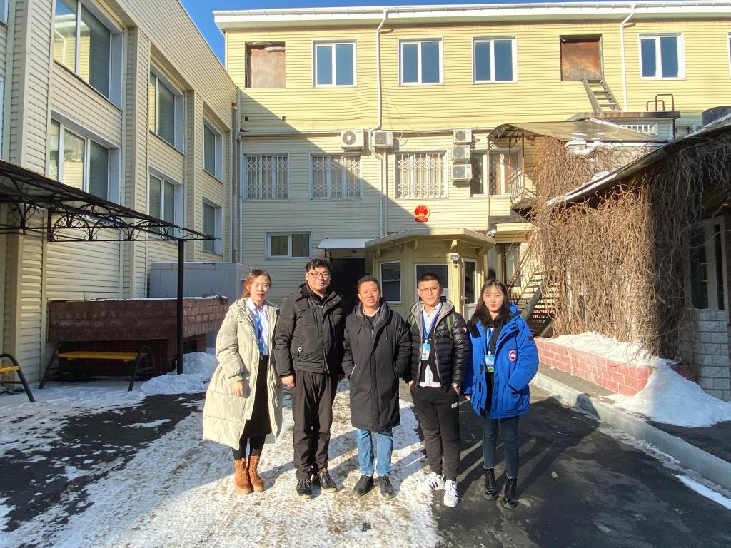 师生代表团应邀前往中华人民共和国驻符拉迪沃斯托克总领事馆,师生代表与中国驻符拉迪沃斯托克总领事馆教育领事蒋中亮老师和领事随员毛晃老师进行了交流。