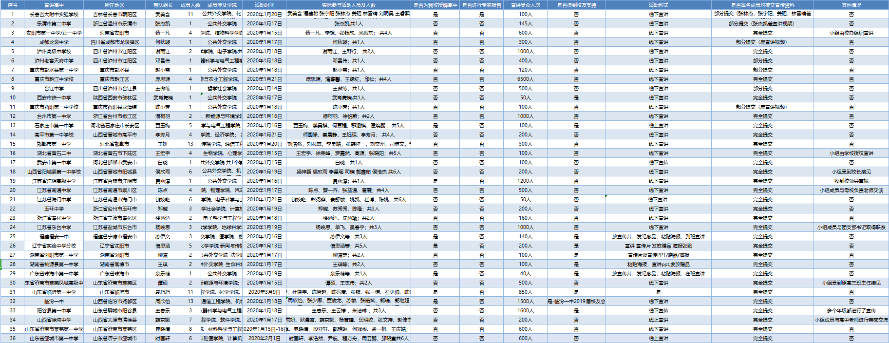 和管理学院、交通学院等38个学院的193名本科学生参与,所涉高中47所,包括衡水中学、东北师范大学附属中学等全国十强高中,其中近50%为全国百强中学,90%以上为省级重点中学,受众人数超过20000人。