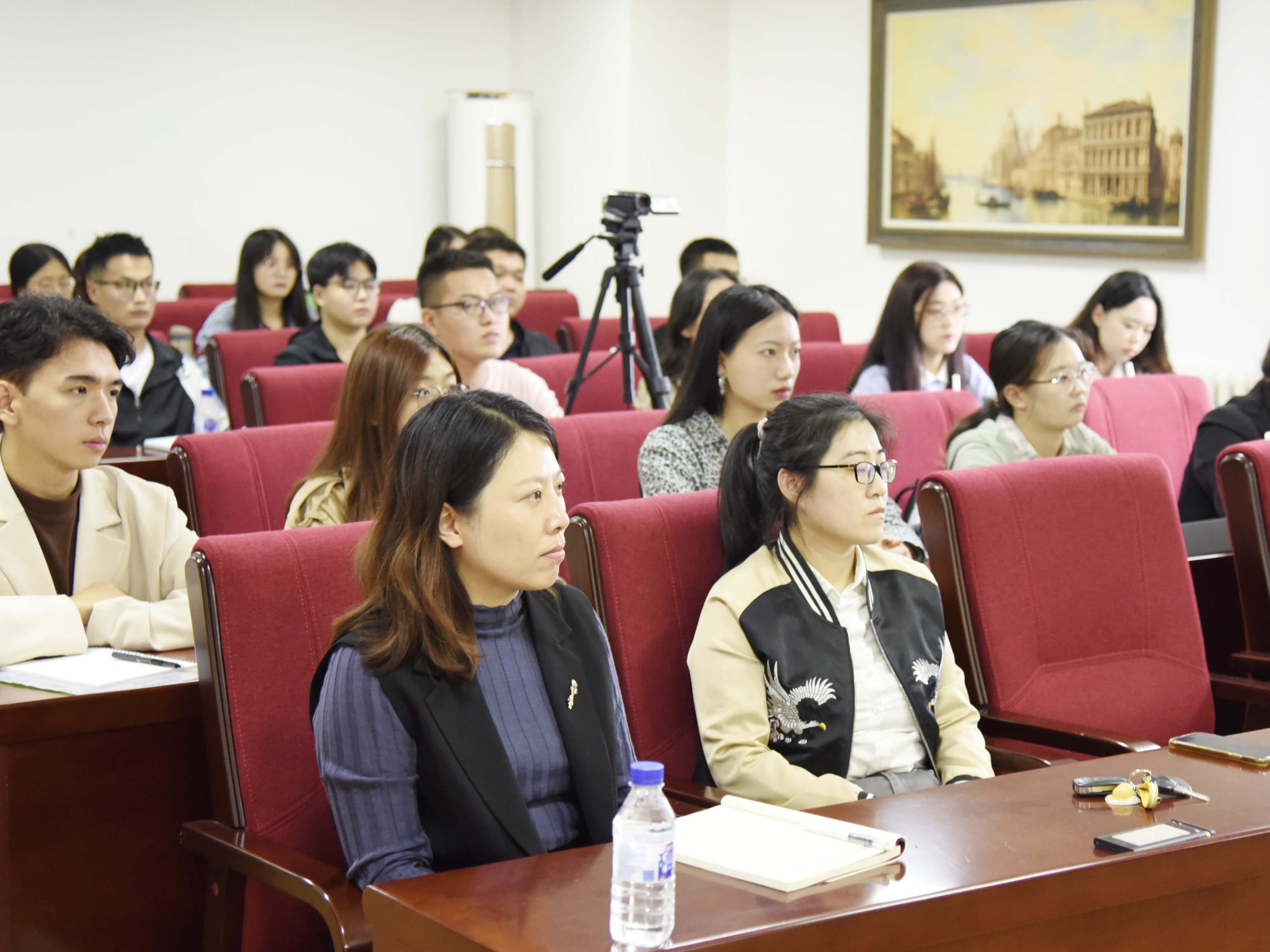 青年教师代表任慕老师,研究生与留学生办公室王庆老师、于晴老师和自拍偷拍