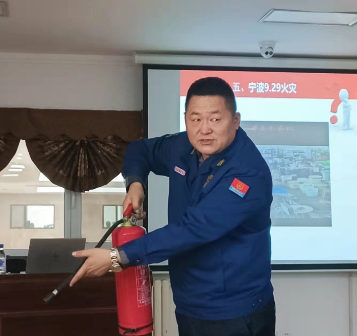 随后,董立明从近几年国内、校内发生的一些火灾案例入手,通过图片视频展示、消防器材使用现场演示等,对与会人员进行专题培训。在讲座中为大家分析了日常消防隐患,介绍了消防器材使用方法,科普了火灾逃生自救知识及技能。他强调,广大师生在日常生活中一定要提高消防安全意识,居安思危,防微杜渐。