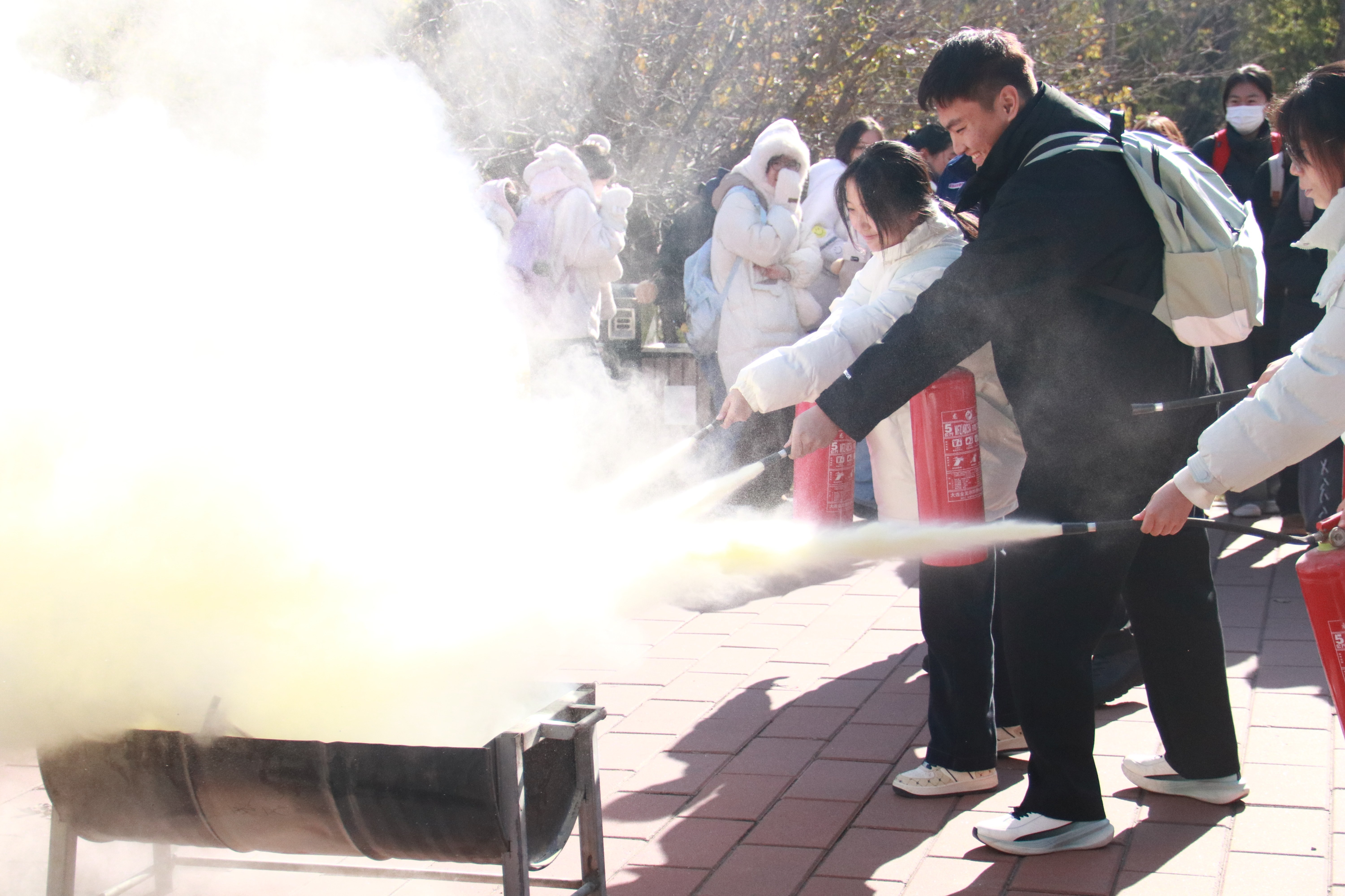 保卫处消防科科长董立明老师担任培训主讲和演练指导,学院行政副院长于洪生主持,共有50余名师生踊跃参加。