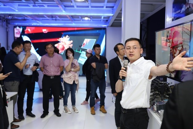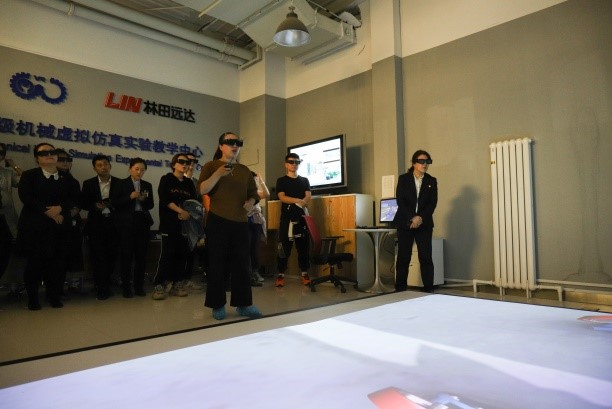 与林田远达创客公园合作历程,带领大家参观了我校在林田远达创客公园三楼入驻的汽车工程学院、机械与航空航天工程学院、电子科学与工程学院、通信工程学院、管理学院、艺术学院的入驻团队和项目。在机械与航空航天工程学院入驻的国家级机械虚拟仿真实验教学中心,王志琼老师向大家演示了虚拟仿真课堂教学,老师们佩戴上3D眼镜后身临其境,体验到了前所未有的真实感;AR(增强现实)项目演示的环节兼具美感与创造力,深入到发动机内部的教学效果让参访者震撼,给参访教职工带来强烈的视觉冲击。在交流过程中,赵军院长表示:实践教学方法改革是推动实践教学改革和人才培养模式改革的关键。我们要尊重学生的选择和兴趣特长,积极推行基于问题、基于项目、基于案例的教学方法和学习方法,尤其要借助互联网技术,积极推进数字化实践教学资源的开发与应用,探索个性化、多样化实践教学,结合现代虚拟仿真技术应用于教学就是基于以上思想的有益探索。我校在此方面已经布局形成了180余项的在研项目,已经获评4个国家级虚拟仿真实验教学项目,取得了较好的成绩,教学效果喜人。希望各位老师能够结合所学所讲授的专业内容和现代的技术应用于教学中,提升人才培养质量。