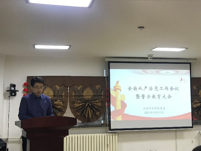 宣讲会后,学院召开党风廉政建设警示教育大会。学院党委副书记、纪委书记王力同志传达了校党委副书记、纪委书记薛徽《以深化全面从严治党引领保障学校事业高质量发展—在自拍偷拍