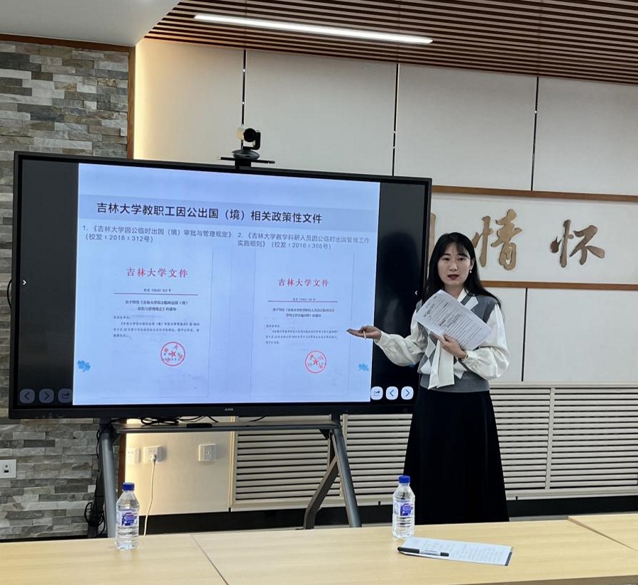 针对学术会议、对外交流等工作,杨民向与会教职工进行流程提示,要求及时做好审批报备工作。同时,外事秘书殷艳楠老师对教职工出国(境)申办流程行了详细解读。