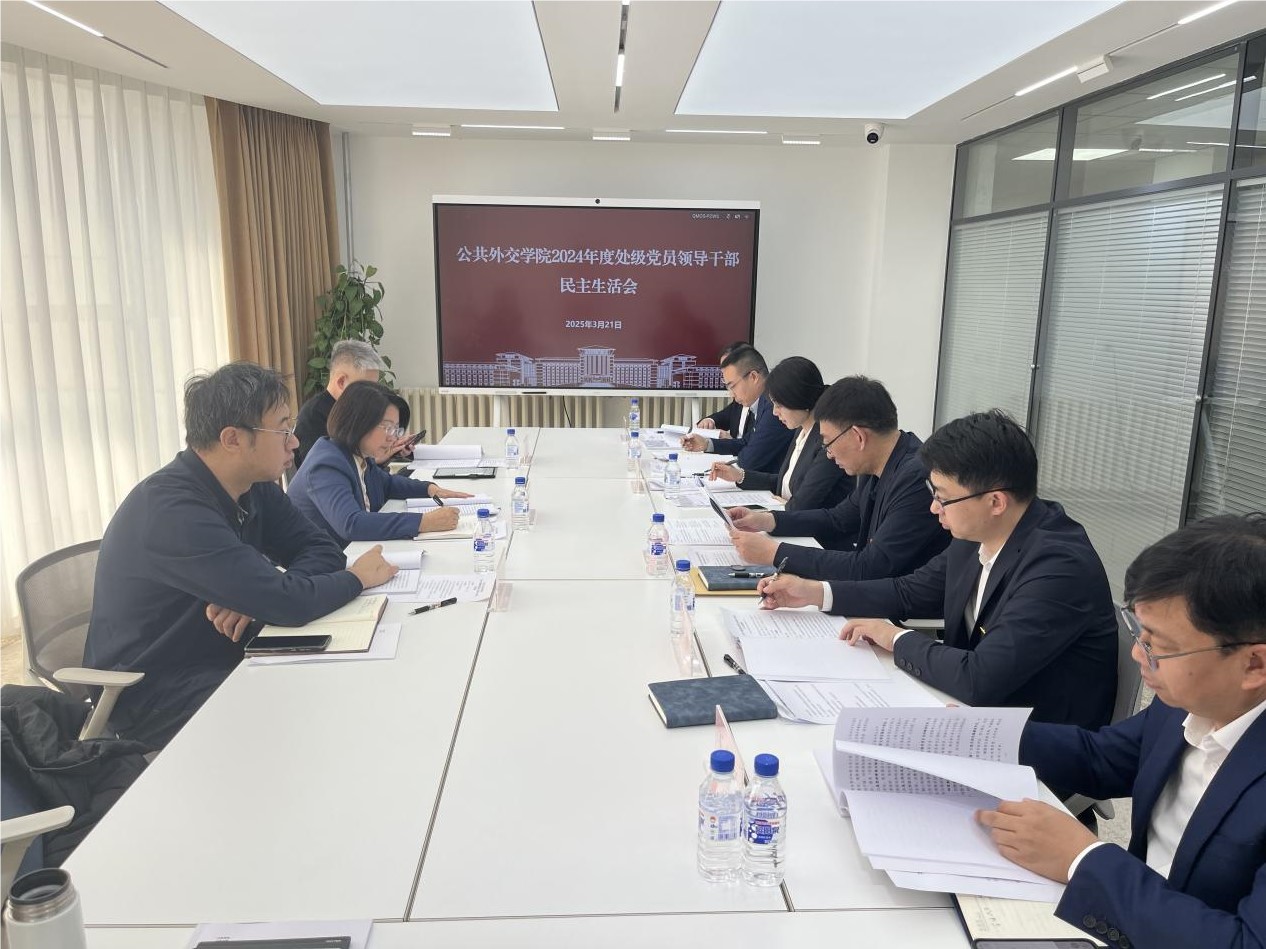 在吕振羽楼810会议室召开2024年度处级党员领导干部民主生活会。学校第1督导组组长张蓼红、副组长高岩及联络员吴昊全程参会指导;学院全体党员处级领导干部出席会议,其他领导班子成员列席。会议由学院党委书记刘昌松主持。
