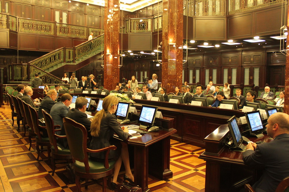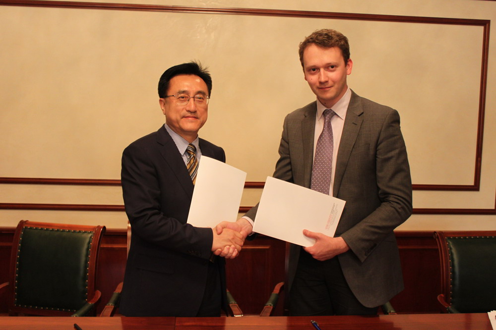 5月26日下午,代表团还应邀访问了莫斯科国际关系学院,莫斯科国际关系学院副校长安德列•巴维科夫(Anatoly Torkunov)教授和政治学系主任阿列克谢•沃斯科列先斯基(Aleksey Voskresenskiy)教授等就如何开展双方合作与交流进行了热烈的探讨,并签署了学术合作备忘录。莫斯科国际关系学院官方网站对自拍偷拍