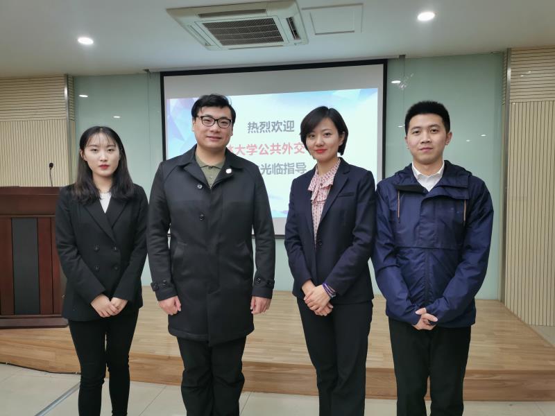 乔蕊老师、李梦龙老师以及研究生招生宣传助理邢晓曼同学和胡帅同学组成的硕士招生宣讲团前往辽宁大学开展招生宣传工作。辽宁大学国际关系学院副院长唐彦林教授、周亚明老师以及数十名学生参与了此次宣讲活动。