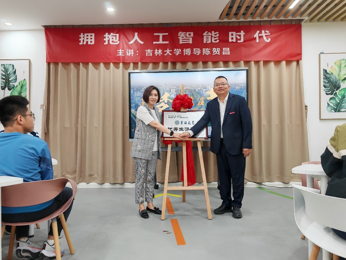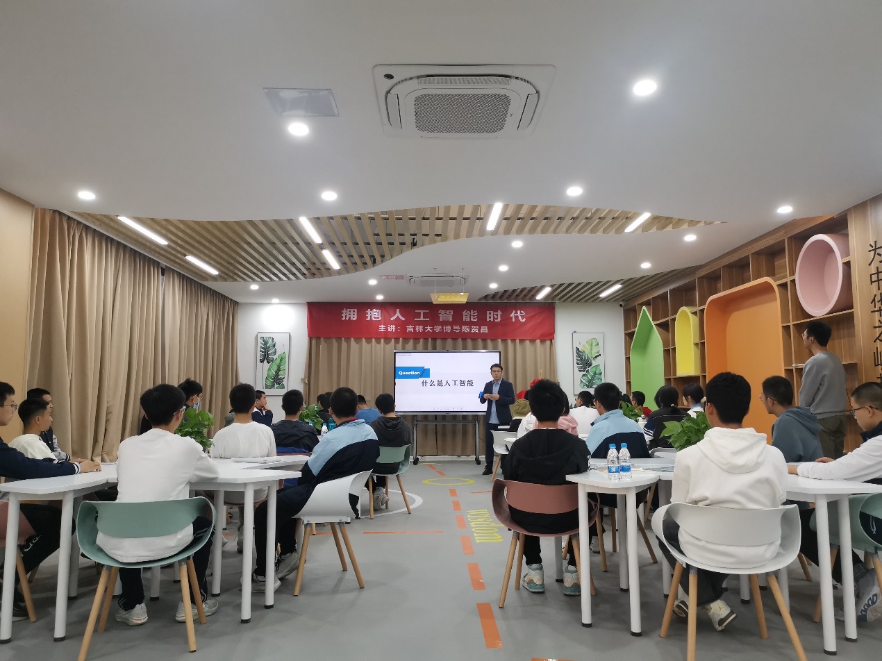 优秀生源基地”牌匾。陈贺昌老师以“拥抱人工智能时代”为主题向与会师生介绍人工智能的发展简史、战略地位和未来趋势,并介绍自拍偷拍
