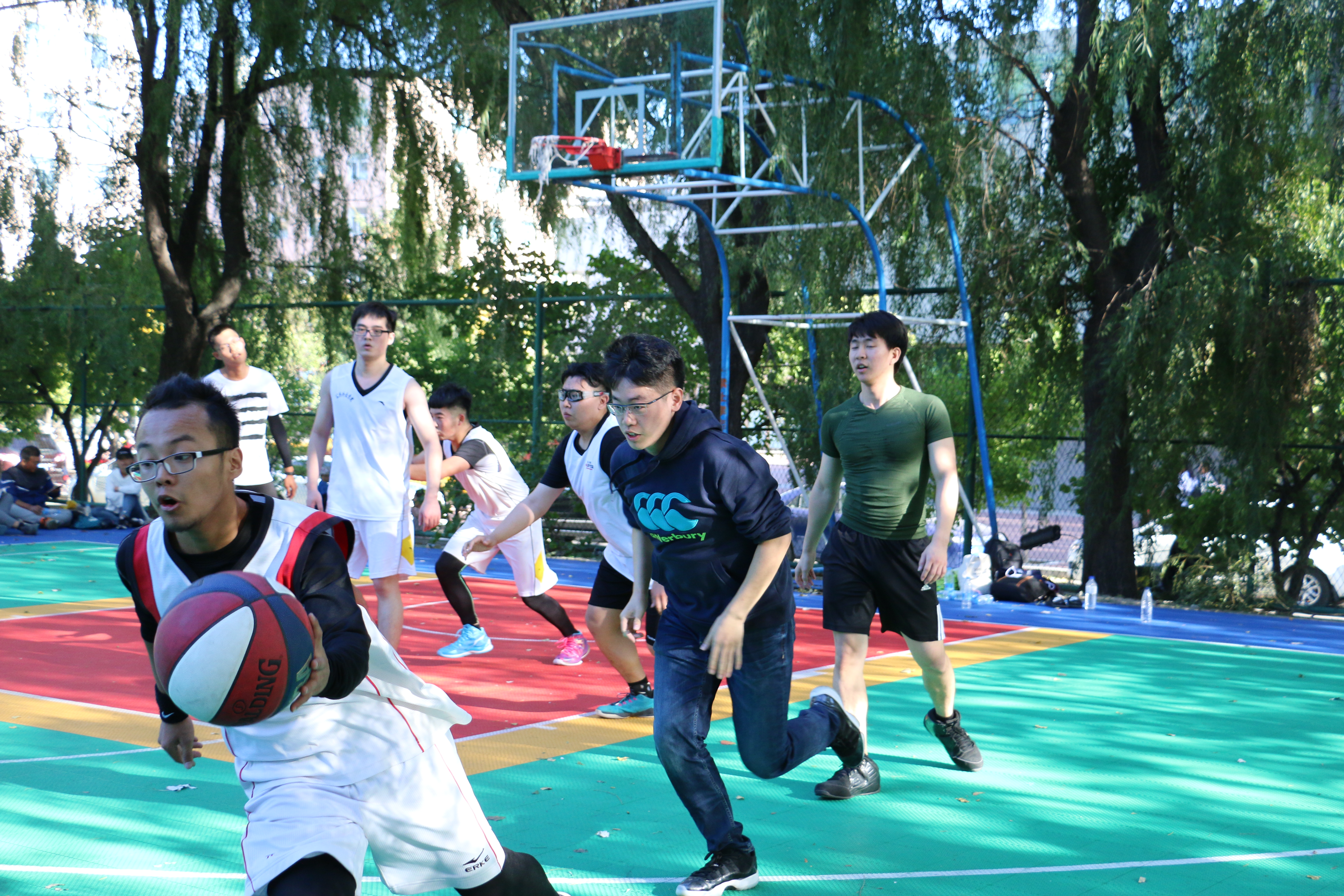 学生会于9月24日下午2时在小北门篮球场举办了“新生杯”篮球赛。参赛队伍有大一新生队与大三大四联队,王力老师以外援的身份代表大一新生加入比赛。