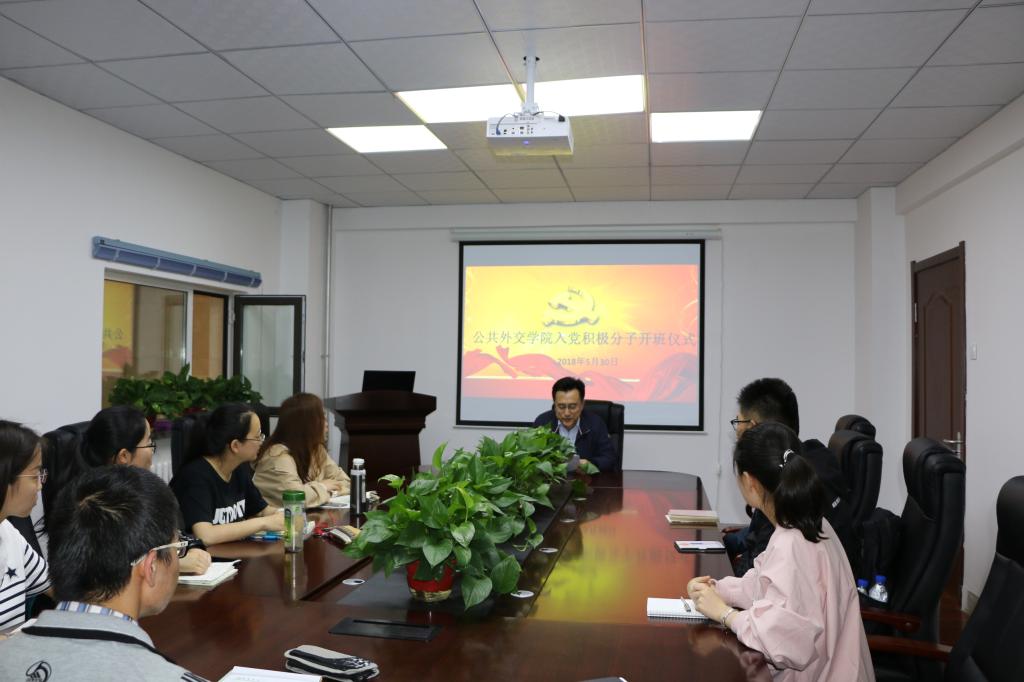 首先,刘德斌书记按照学校党委工作要求和院党支的工作安排,向全体入党积极分子讲解了新一期积极分子培训班的具体安排,强调了同学们的学习目标、学习方式和学习要求。并对全体积极分子提出了三点希望:一是要珍惜学习机会,重视学习和思考;二是要把握学习重点,努力提高培训实效;三是要端正学习态度,树立良好的学风。在培训中学有所成,学有所获。参加开班仪式的每个同学进行了简单的自我介绍。