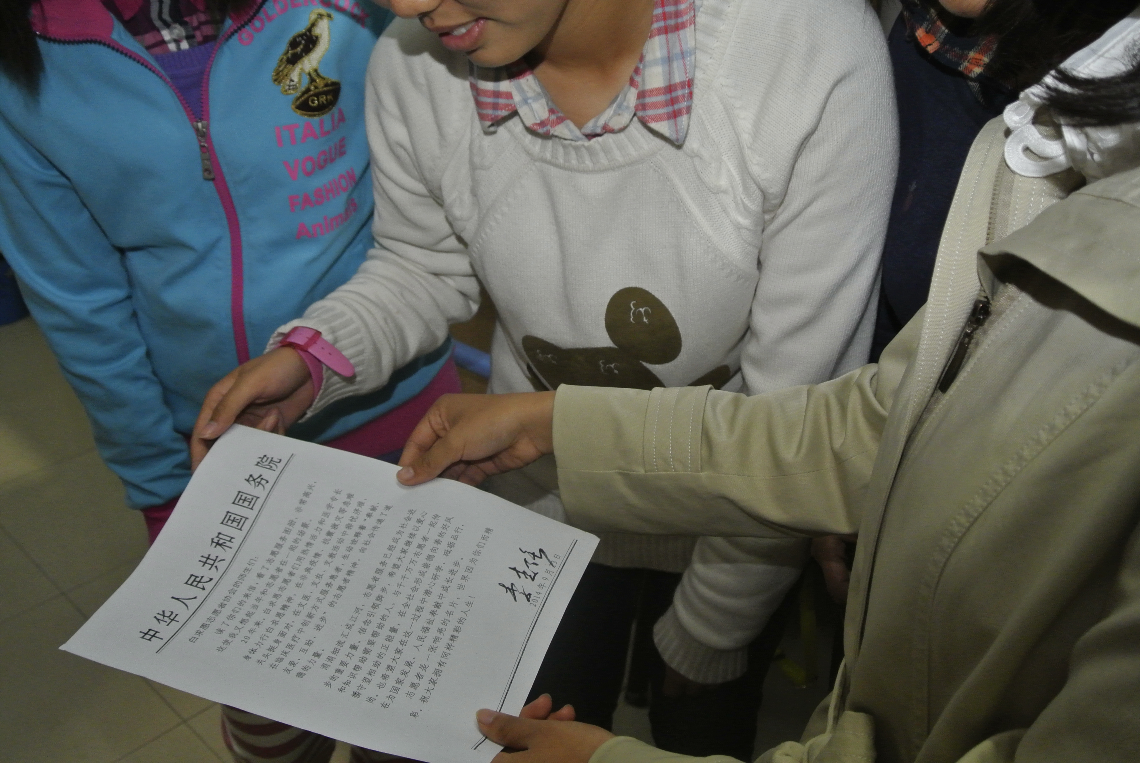 女生仔细阅读学习了李克强总理回给白求恩志愿者协会的信。李克强总理在信中高度赞扬了我校学生的志愿服务精神,这给了我们以极大的激励。在阅读了总理的回信后,同学们参加志愿工作的热情十分高涨,认识到纷纷表示要在大学期间多多参加志愿者活动。