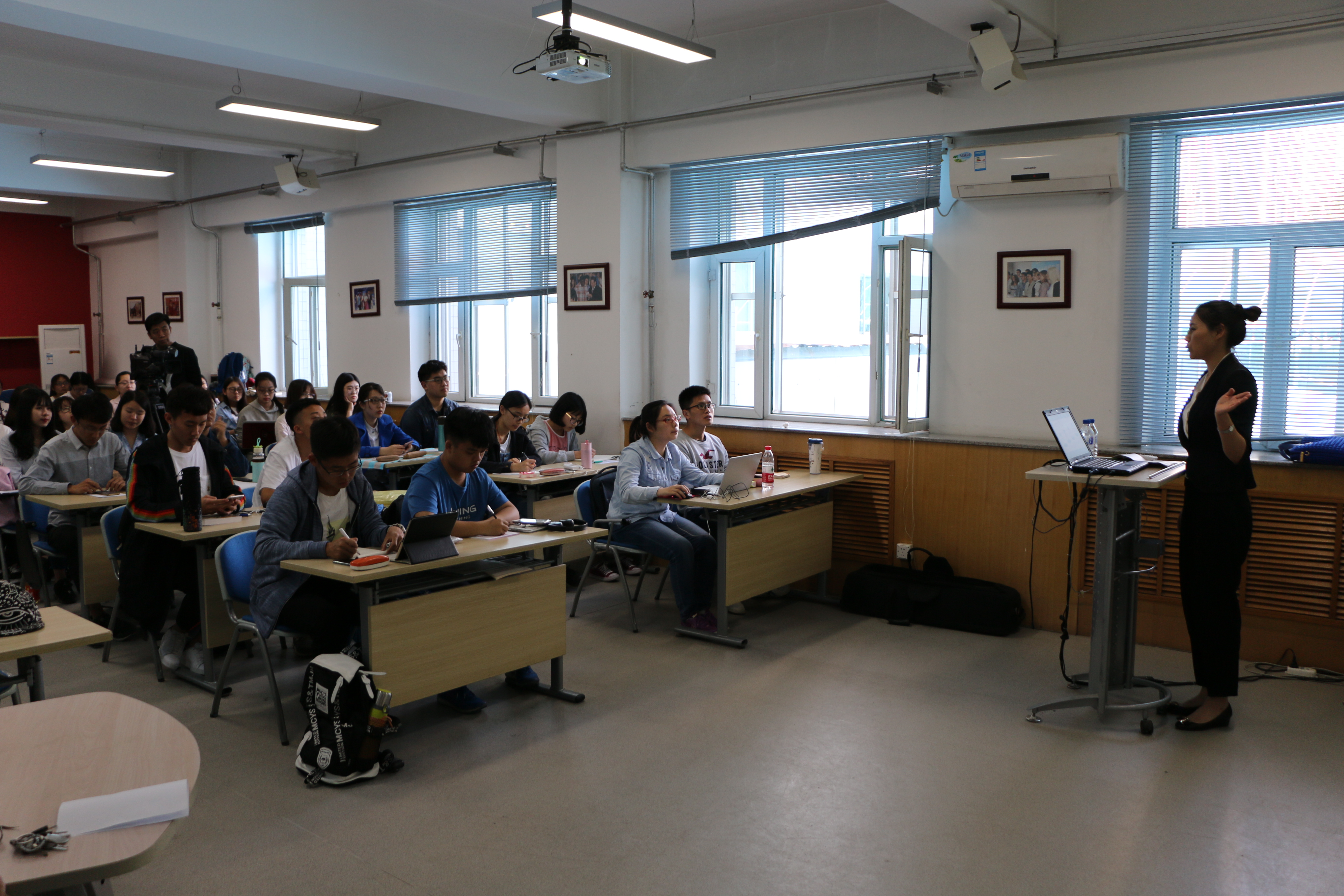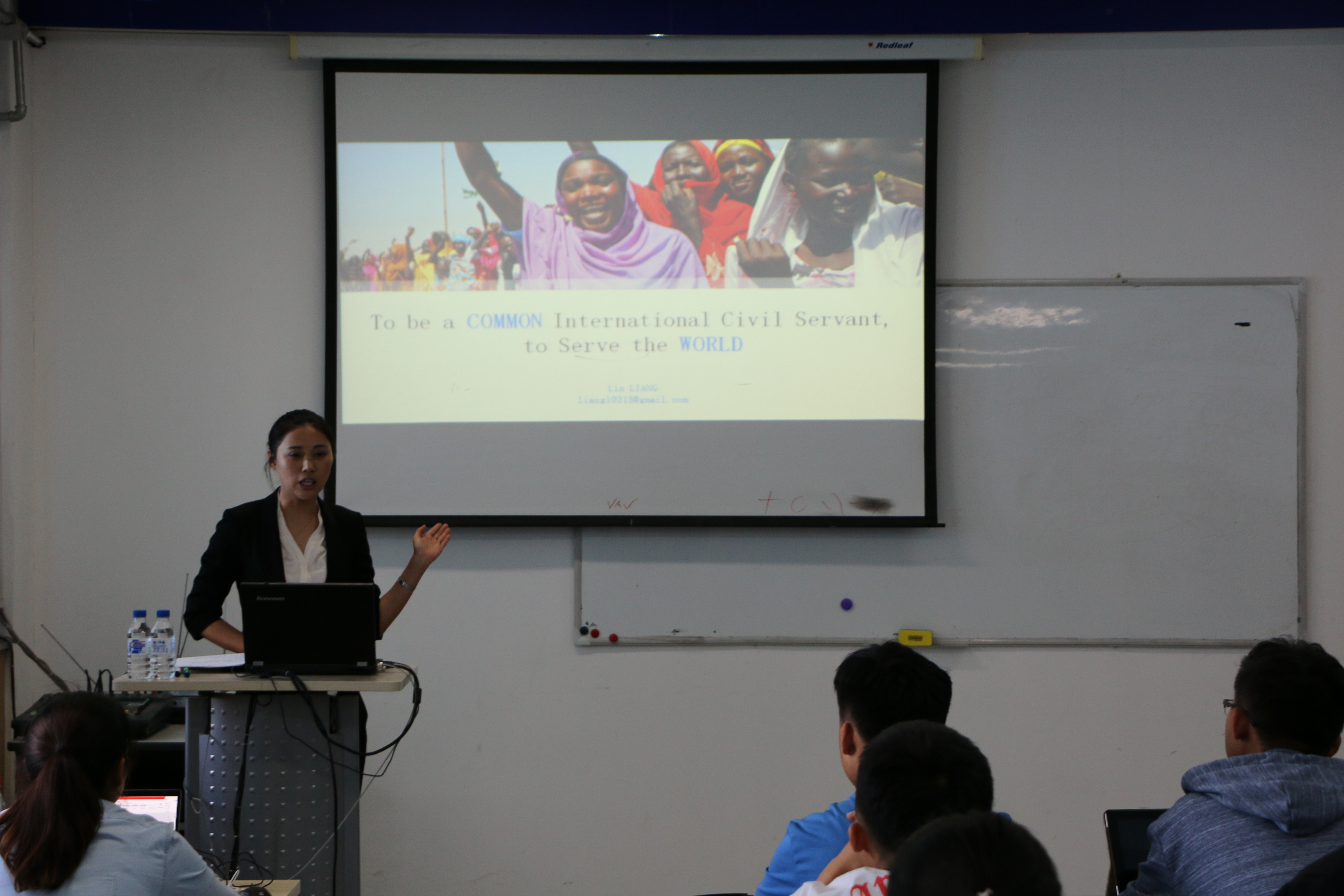师生作了一场题为”To be a common international servant”(作为一名普通的国际公务员)的专题讲座。