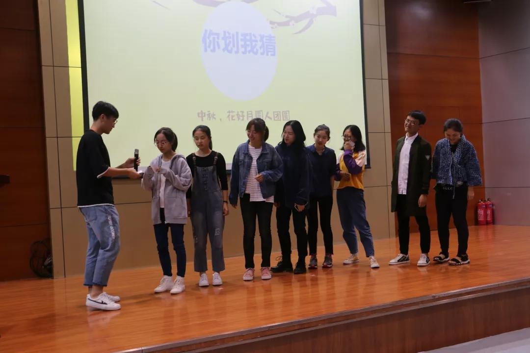 2019级的新生们也不甘示弱,纷纷登台献艺:胥爽独唱《成都》,《Do you hear the people sing?》;胡永恒表演相声;毕成安独唱《爱笑的眼睛》;苏伊文,周俊鹏,毕成安,王钧正合唱的《童话》更是将新生中秋茶话会推向高潮。