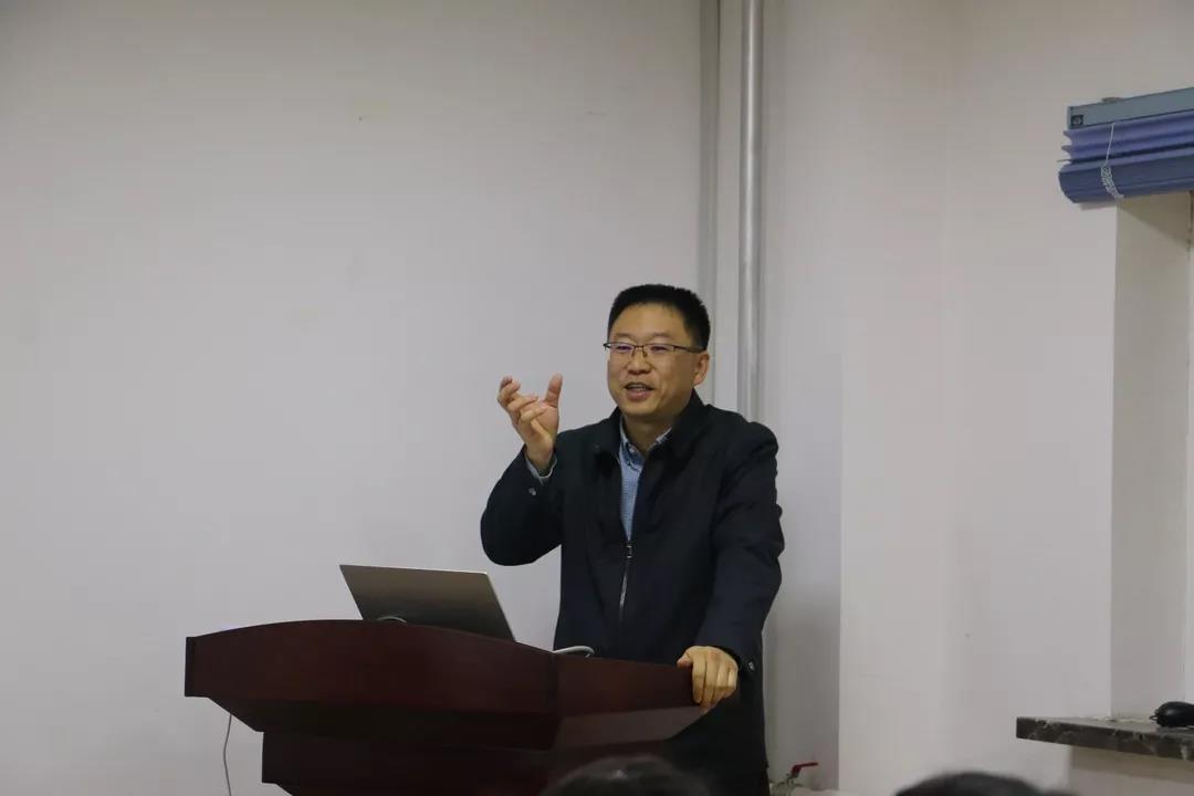 党总支书记杨民老师为2019级新生讲授第四堂思政课:适应大学生活,构建良好的人际关系。