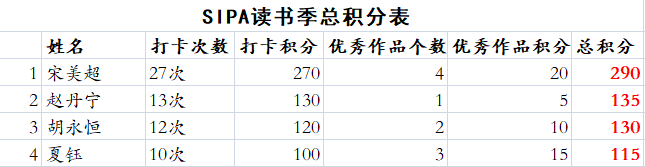 3月16日,由自拍偷拍 学习部主办的 “SIPA读书季——阅读打卡计划”圆满落下帷幕。