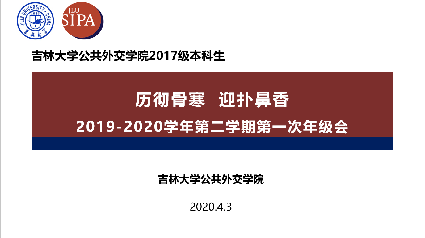 2017级本科生通过钉钉网络平台,召开了以“历彻骨寒,迎扑鼻香”为主题的线上年级会。本次年级会由2017级本科生王川主持,辅导员张淑艳老师、2017级班主任陈曦老师、乔蕊老师参加了本次年级会。
