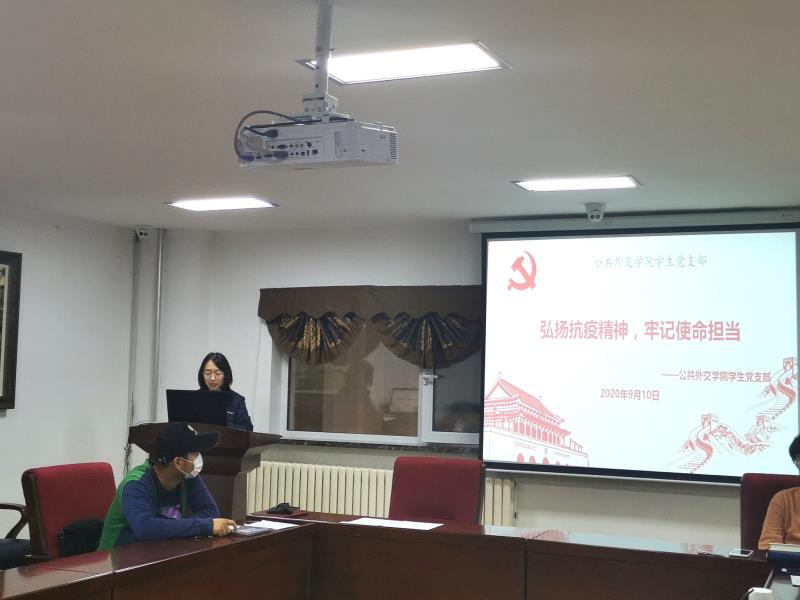 随后,党支部书记张老师主讲了以“弘扬抗议精神,牢记使命担当”为主题的党课。首先,张老师带领大家回顾了在全国抗击新冠肺炎疫情表彰大会上,习近平总书记向国家勋章和国家荣誉称号获得者——钟南山院士等抗疫英雄颁授勋章奖章的视频。张老师以“感动、敬仰、向往”三个词概括了自己的感受,并对与会党员同志提出了要把小我融入大我,尽好应尽的责任,不断磨砺自己,在祖国需要的时候挺身而出的期望与要求。各位与会党员在观看视频后也纷纷表达了自己想法和感受,会议气氛热烈。