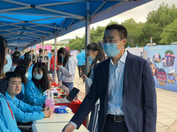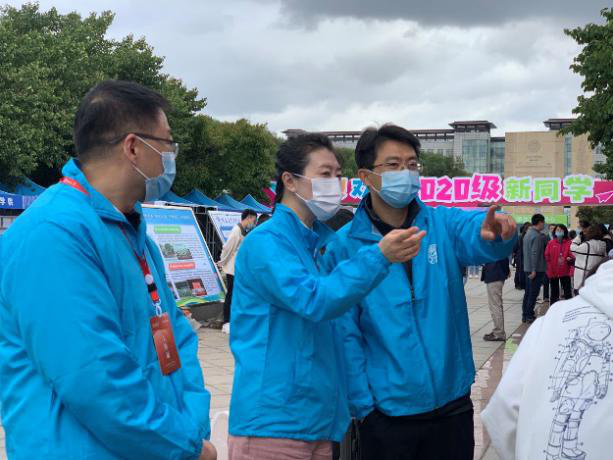 党委书记姜治莹、校长张希分别来到迎新现场检查工作,向学院老师了解迎新情况。自拍偷拍