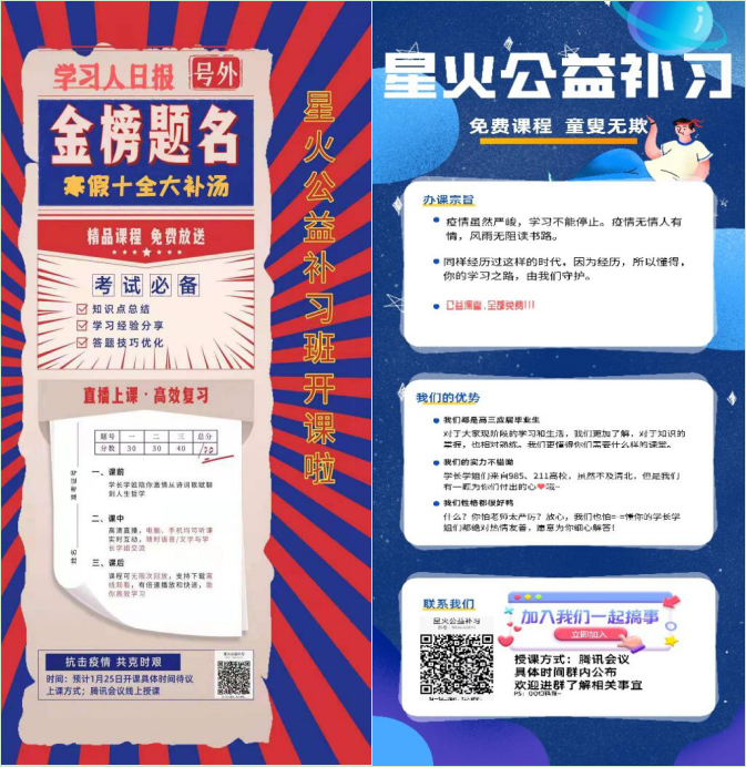 接下来让我们走近“星火公益补习小队”——为给学业受到疫情影响的高中学子们提供帮助,自拍偷拍