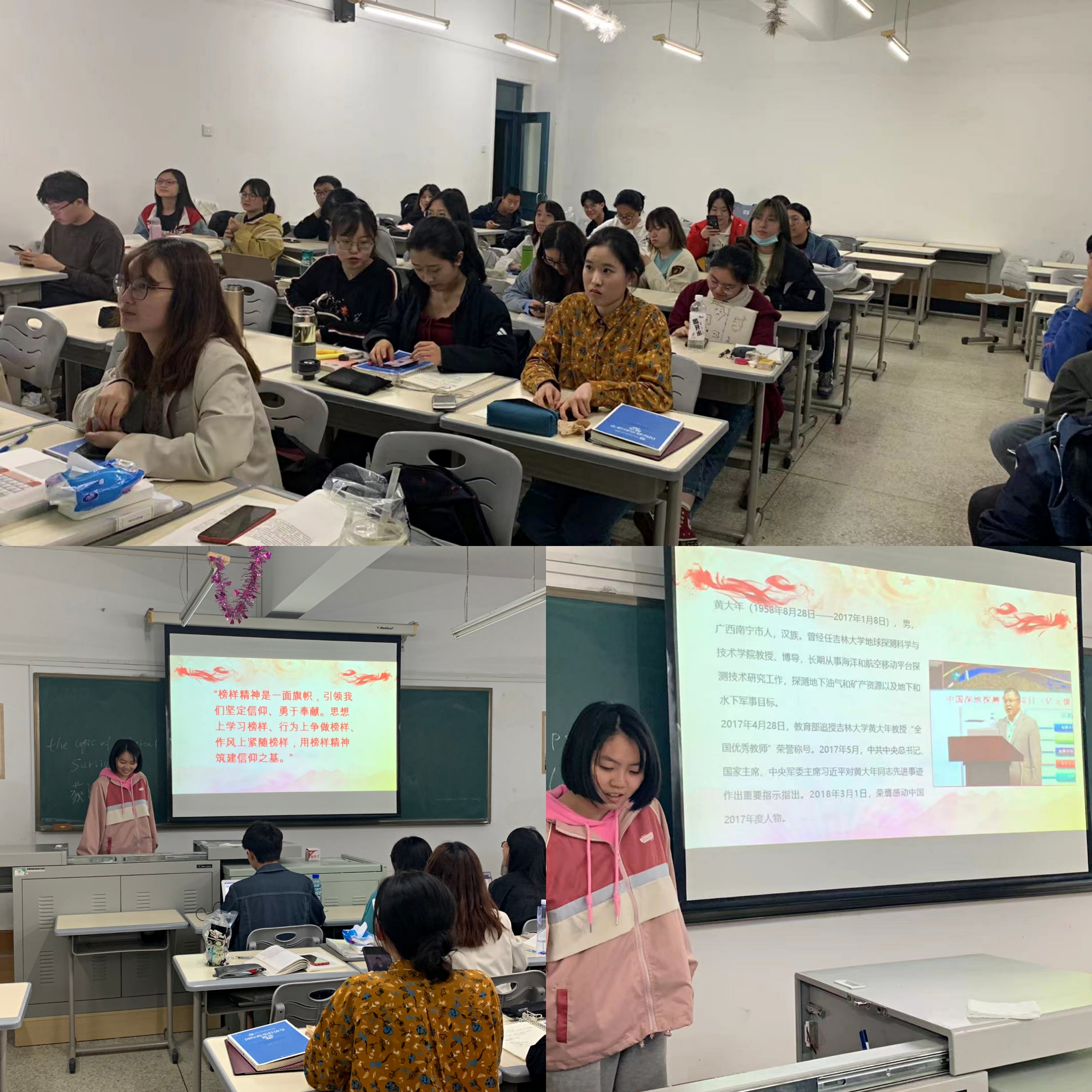 的榜样人物们,如匡亚明、唐敖庆、黄大年等。班团会后,同学们进行了深度的讨论。通过开展此次主题班会,相信同学们将在追梦路上勇于拼搏,勇于奋斗,坚定理想信念,争做社会主义建设者和接班人。