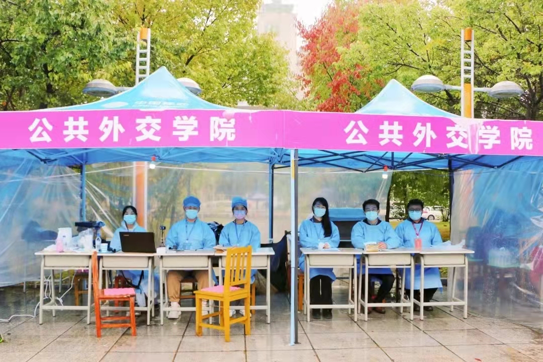 第七届团委学生会的工作人员在迎新站准时集合,自拍偷拍