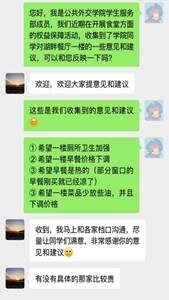 根据问卷结果,莘子园食堂的问题集中在菜品种类、质量以及食堂管理等方面。工作人员联系了同学们的好朋友——张哥反馈意见,张哥表示乐意听取同学们的意见,并会加以改进,努力为同学们营造更舒适的用餐环境。