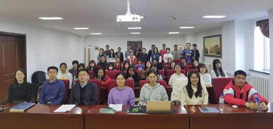 党委书记杨民老师为2021级新生讲授思政课。党委副书记兼副院长王力老师、新生辅导员张淑艳老师和全体2021级本科生参与本次活动。