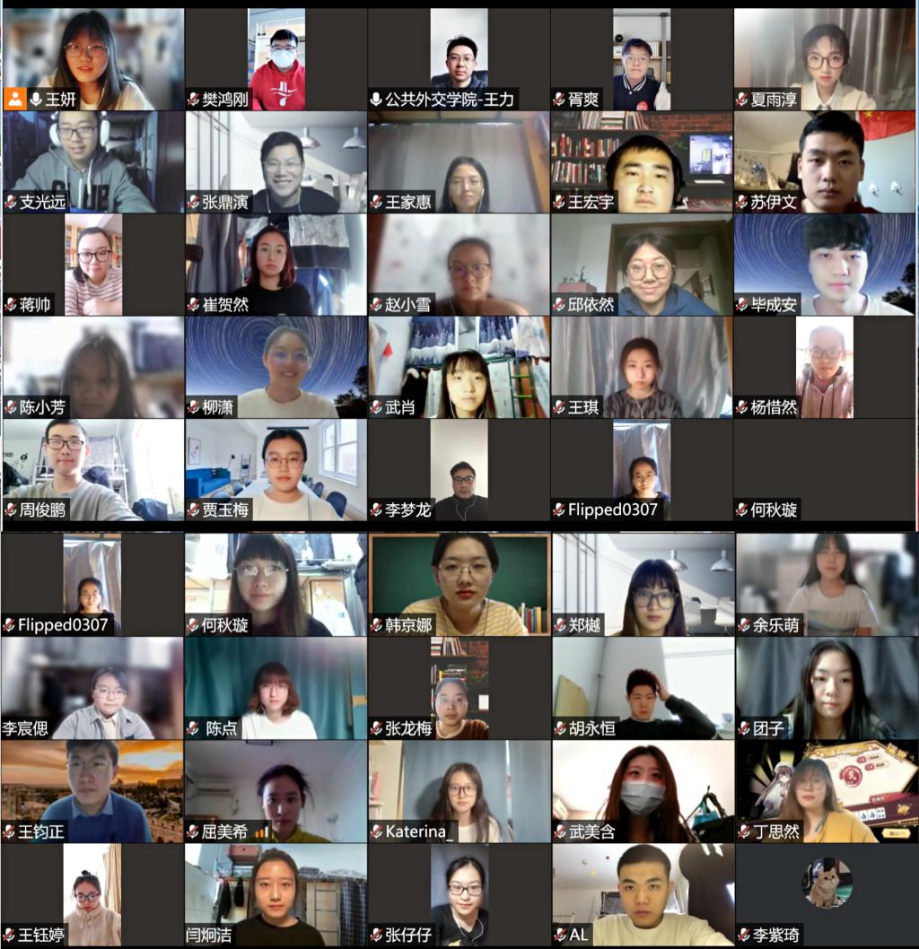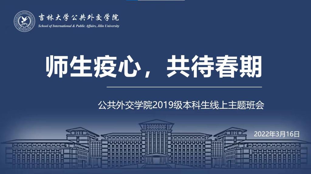 2019级本科生召开了主题为“师生疫心,共待春期”的线上主题班会。班会由2019级本科生王妍主持,学院党委副书记兼副院长王力老师、班主任李梦龙老师、蒋帅老师以及辅导员樊鸿刚老师与2019级全体本科生参加了本次班会。