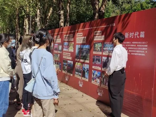 在宋治平体育馆东侧长廊组织同学们参观了“喜迎二十大、传承百年志、奋进新征程”主题巡展。作为新生的第一堂团课,自拍偷拍