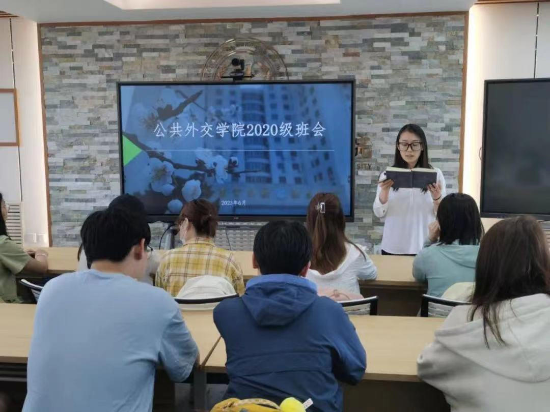 2020级外交学专业本科生主题班会于吕振羽楼818会议室顺利召开,辅导员张淑艳老师、班主任崔悦老师及2020级全体本科生参加了本次会议。本次班会旨在加强师生沟通、深入了解同学们近期的生活和学习情况,叮嘱同学们假期安全和诚信考试相关事宜,并为学年论文写作提供相关指导和建议。