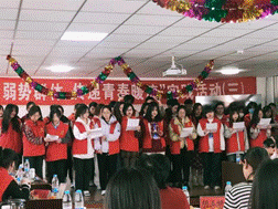 “伸出你的手,让别人幸福。”这个寒假,我来到宁夏回族自治区吴忠市罗山社区残疾人托养中心开展志愿服务活动。这些可爱的孩子们,有些是智力残疾,有些生活在失声和失语的世界中。所幸,心怀大爱,身残志坚的女企业家徐海霞女士,为这些折翼天使提供了肉身的居所、灵魂的皈依。她在当地开设多家爱心洗车行,创立电商公司,使这些孩子们自力更生,为当地创造就业岗位的同时又减少了政府的财政负担。在托养中心,我与其他志愿者一起,为这些可爱灵动的孩子们献上一曲歌舞,献上最美好的祝福。这些孩子们用手指舞向我们致以感谢。收起那些同情的目光,请以平等的视角来对待这些天使们,残疾人也一样可以演绎精彩的人生!