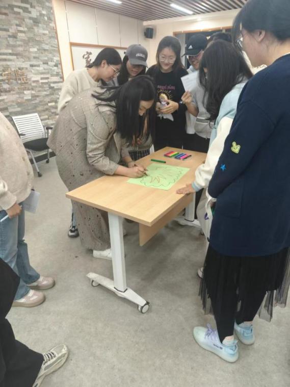 活动尾声,在“快乐传递”和“团体树制作”中这一环节,各个小组的成员依次写下对组员的评价,称赞等,也写下了研究生阶段最想完成的三件事,伴随着圆圈一同传递的不仅仅是那一页页的A4纸,还有快乐与祝福。最后,现场响起歌曲“相亲相爱一家人”,在温馨如春、幸福洋溢的氛围下,新生们集思广益、创意涌动,积极参与班级团体树的绘制,并与其合影,留下了珍贵的回忆。这一环节,不仅促进了新生们的心理健康,还让他们更加珍惜彼此间的友谊。