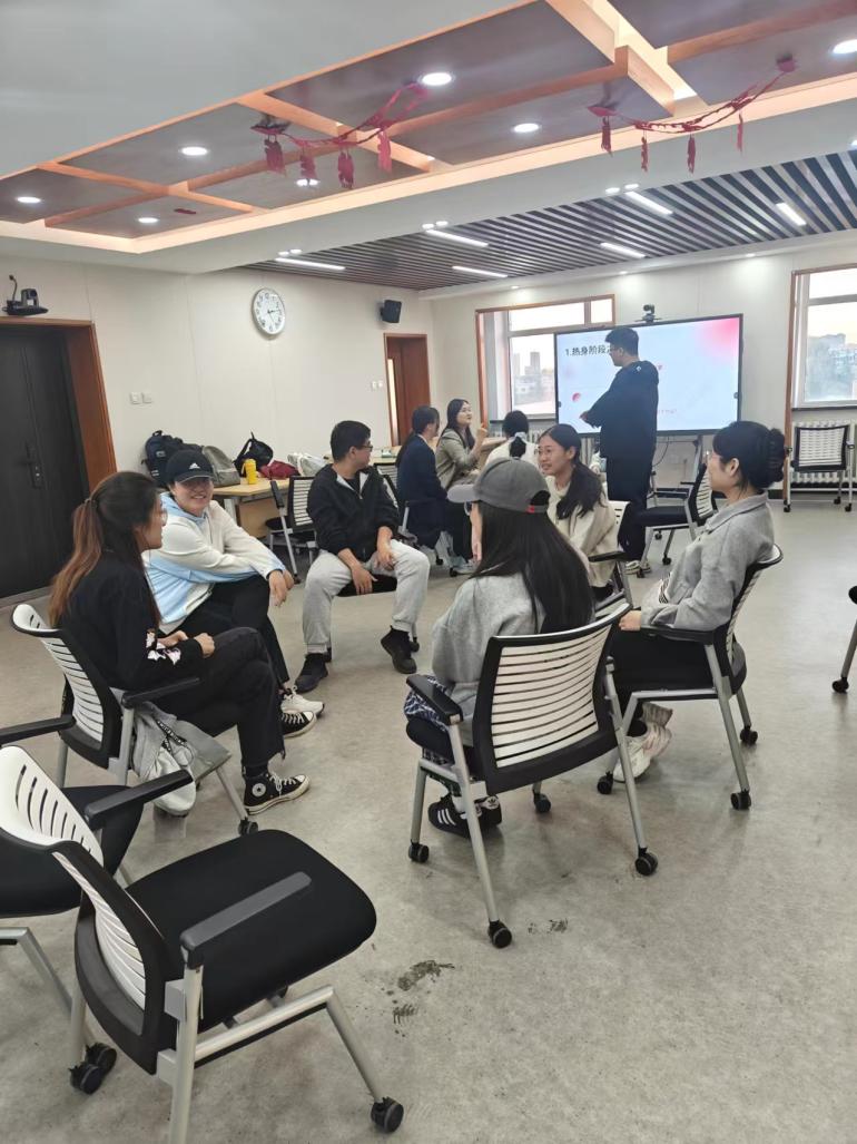 本次活动由研究生朋辈心理辅导员赵小雪主持,2024级全体外交学和国家安全学专业硕士研究生参与。赵小雪同学首先对本次活动的主题、目标、预计时间和安排等进行简单介绍,整场活动分为热身、主体和结束三个阶段,预计90分钟。