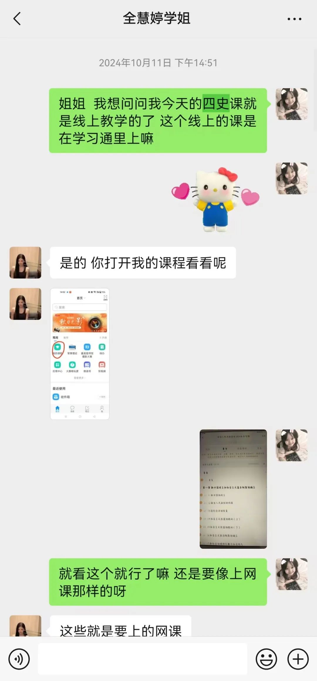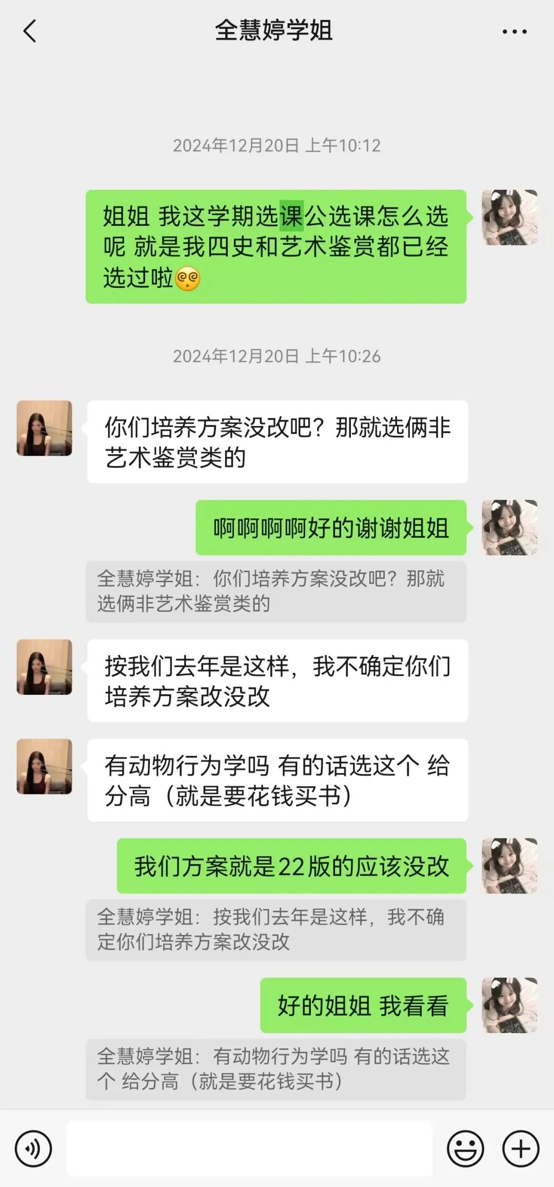 学姐非常认真细心地回答我的问题,从专业课到公选课,从学习到日常生活,为刚上大一有许多迷茫困惑的我解决了问题并指明了方向,我在学姐的帮助下也顺利的度过了大一上学期,感谢学伴活动让我有机会向学长学姐取经,谢谢学姐的帮助与鼓励。