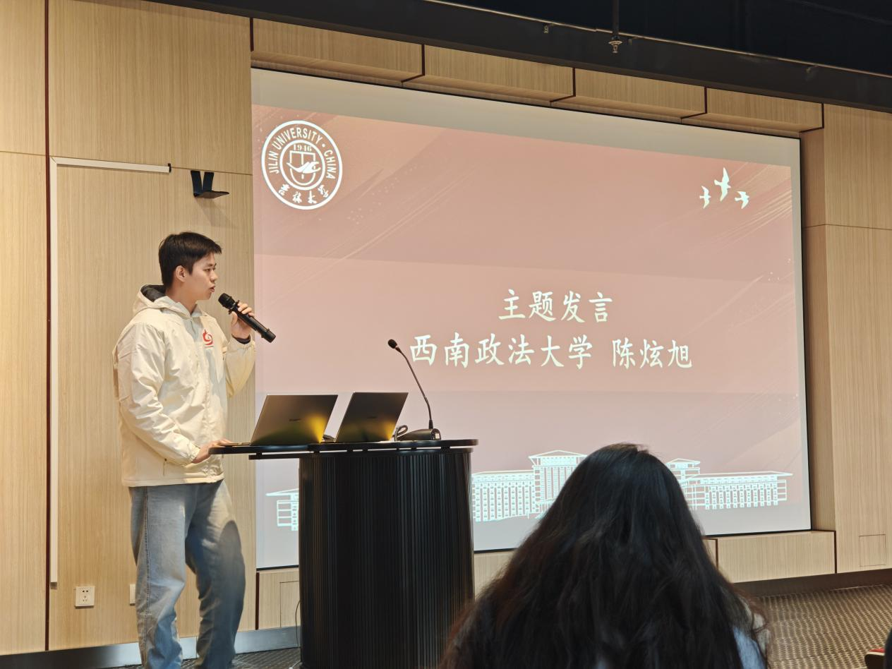 来自西南政法大学的陈炫旭同学聚焦本校总体国家安全观宣讲团实践,以“牢记嘱托,挺膺担当,在国家安全宣讲中贡献青春力量”主题进行发言,用生动的案例、真挚的情感和务实的行动,诠释了“青年何为”的时代命题。