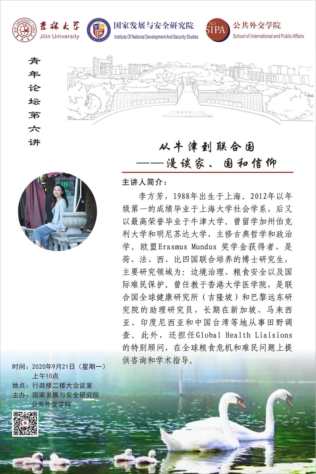 邀请李方芳博士做客青年论坛,李方芳博士结合自身的海外求学和科研经历,作了主题为《从牛津到联合国——漫谈家、国和信仰》的报告。国家发展与安全研究院、自拍偷拍