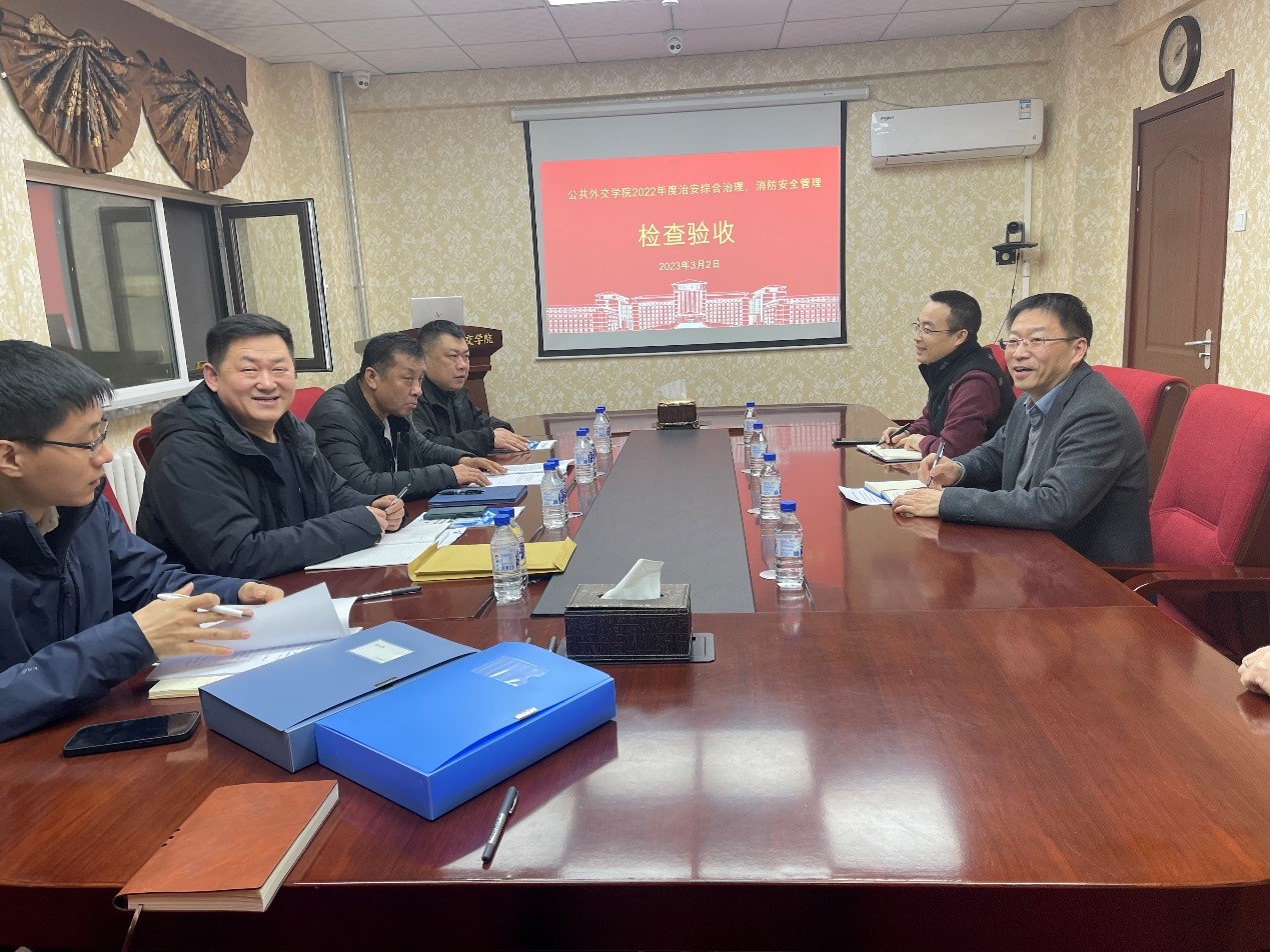 党委书记杨民首先代表学院对检查组表示欢迎,同时汇报了学院治安综合治理及消防安全管理年度工作。汇报围绕严格落实消防安全工作要求,扎实打好综治基础;严格落实疫情防控工作要求,确保学院运行安全;严格落实意识形态工作要求,确保学院政治安全等方面,全方位介绍了学院治安综合治理和消防安全管理工作开展情况,并就2023年度工作计划予以详细介绍。