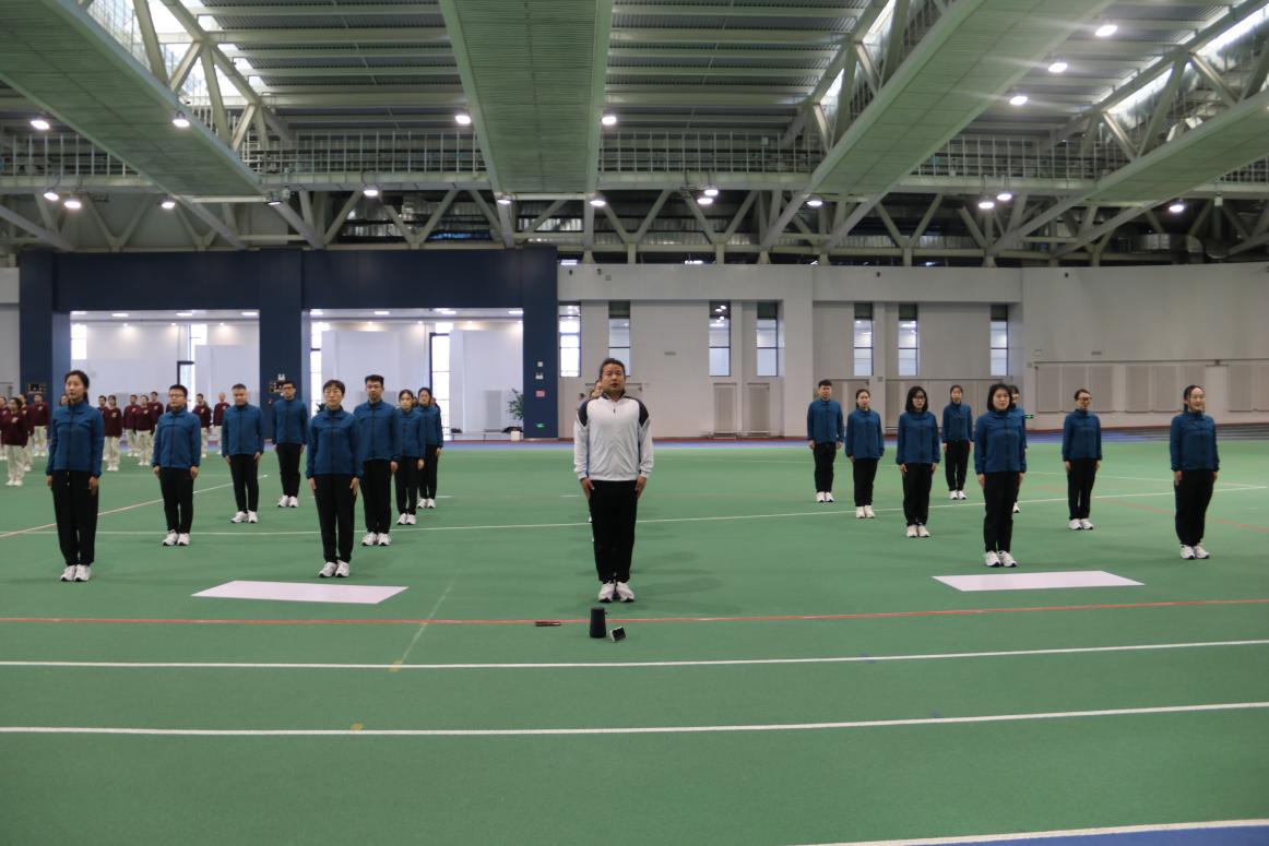 参赛教职工们在宋治平体育馆四楼田径场进行赛前最后一次排练,孟翔冲老师为大家进行了细致的动作指导。期间,自拍偷拍