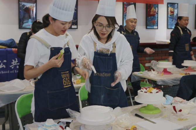 于4月29日下午组织开展了“烘焙温暖,品味幸福”主题烘焙活动。本次活动中,学院近20名教职工穿上围裙,带上厨帽,一同学习制作了蛋糕。