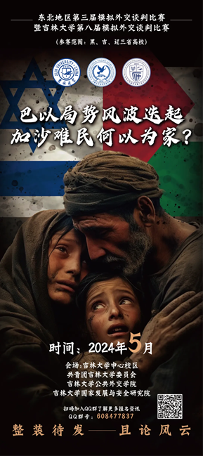 以谈判为桥,连接世界;以智慧为剑,破解难题。化为一国代表,穿梭于斡旋之中,以纵横捭阖之术,广汇青年智慧,探寻危机化解之道。在谈判场上,我们将全力以赴,与各国一道解决巴以冲突下的加沙难民问题。我们将继续秉承“辽海凿空,运筹帷幄;言信达雅,持节护国”的院训,向大家展现大外国关学子的风采与实力!我们将以虚怀若谷的态度,期待与各校同学相聚一堂,在言语交锋中启迪智慧,在思维交流中增进友谊!